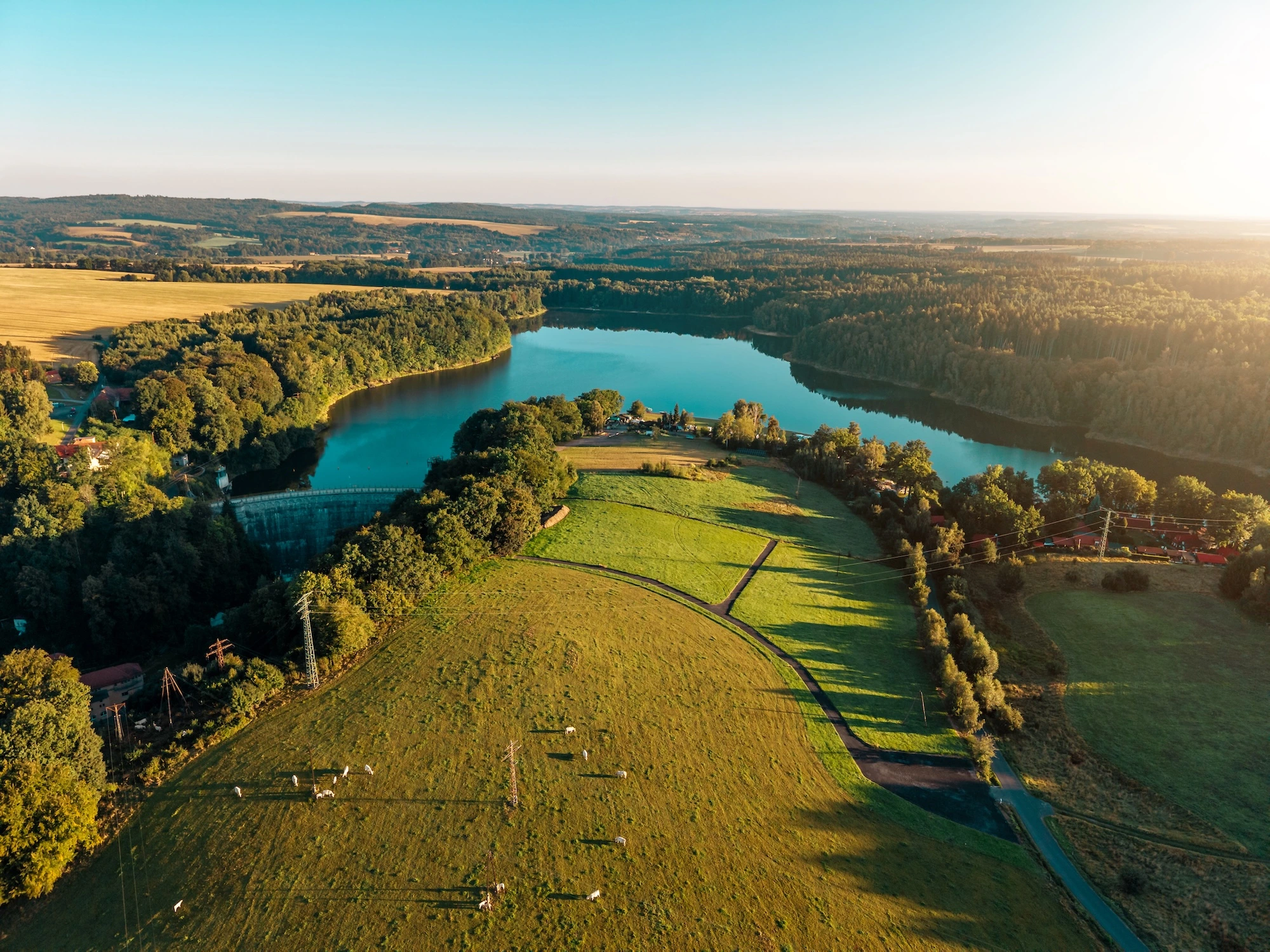 Urokliwe, spokojne jezioro w otoczeniu lasów i wzgórz oddalone o 4km. Świetne miejsce do wypoczynku, wędkowania, pływania i uprawiania sportów wodnych.